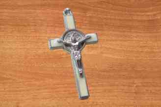 Cruz con San Benito, poderoso símbolo de protección espiritual, fe y resguardo energético para uso personal, ritual o decorativo.